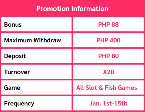 3. A deposit of PHP 80 will result in a credit of PHP 168 in the form of a bonus.